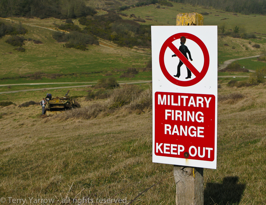 I took the shot above recently on a walk across the MOD Artillery Firing Range……and yes, that is two walkers clambering over one of the tanks that I believe are used as targets. The range walks are only open to the public at certain times because most of the time there is firing practice going on. When the walks are open, the public are restricted to the footpaths – which are of course checked for unexploded shells before opening the gates. These signs are specifically to warn people that on other parts there may be unexploded shells, so basically, if you want to live, keep out…….a fact that appears to have been lost on these two walkers! Of course what then happened is that seeing these two clambering over the tank, others followed! Am I being wimpy or is that a stupid thing to do? I was walking in the area all day and I didn’t hear any explosions so I assume they got out safely!