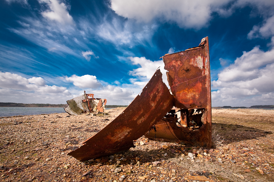 Rounding the point, you come across Redhorn Quay which was once an important landing stage for boats sailing from the Studland area to Brownsea Island, mainly when it had its pottery industry, and other places. It has long since been abandoned and all that remains are the hulks of one or two boats rotting away. These days the quay sees only waders foraging for food and the occasional walker like me but it is a lovely wild place. The wreck at Redhorn is not technically a wreck, it is just an old metal hulled barge that was left there and has rotted away over the years. There are a few ‘wrecks’ like this one in the harbour, as well as some real wrecks on the sea bed. These have to be regularly surveyed to make sure they have not moved as they could constitute a danger to the ships and boats that use the harbour. I got chatting to the man whose job it is to dive to these wrecks and cary out the survey – well it beats a desk job doesn’t it!
