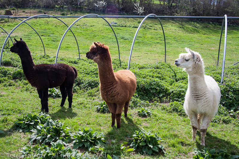 You see some strange sights while walking! I often come across alpacas which frankly are strange – they look like some freak of nature that was created on a Friday afternoon just for a laugh ;)! They look like sheep reflected in a fairground distorting mirror! Actually I think they are rather cute, although it has to be said that the males look a bit effeminate ;)! Only kidding! These alpacas did pose rather nicely for me though – shame about the background! Incidentally they were looking at a dog!