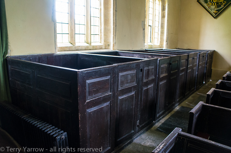 The church is also one of the few with some old box pews remaining.  These were installed in churches from the 16th to the 19th century so that families could sit together and have a degree of privacy, sometimes to conceal non devotional activities!  Naturally the standard of pew would be suited to the social standing of the family with some having curtains and tables and even fireplaces, in fact they were passed down the generations in wills!  Of course the best and the one nearest the front would be reserved for the Lord of the Manor, whilst lesser mortals would have quite a small affair somewhere near the back!  Perhaps it is a good thing that most were ripped out in the 19th century!