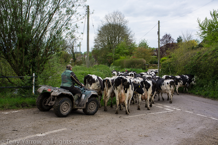 I had to leave the church and go on my way again but I hadn’t gone far before I met another villager.  He was a farmer who ran one of the five farms in the village (very strangely, at one time one was an ostrich farm)!  It was milking time so the farm workers were bringing the cows down from the fields to the village farm to be milked.  To do this, the cows had to be brought through the village lanes which meant stopping traffic.  It was once a common thing to be held up in your travels by herds of cows but sadly these days it is quite rare because today 90% of our travelling is on motorways or bypasses.  I say ‘sadly’ because I think it is a lovely reminder of times when the pace of life was slower!  It is also a good sign because it means that summer has arrived – in the winter the cows are in the barns and not the fields!