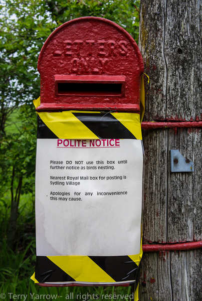 The other unusual sight was a post box attached to a pole.  It was unusual in that it was an Edward VII post box, but more than that, it was unusual because of the sign on it.  It said, ‘Please do not use this box until further notice as birds nesting’!  Isn’t that cool that modern life still stops sometimes for nature!