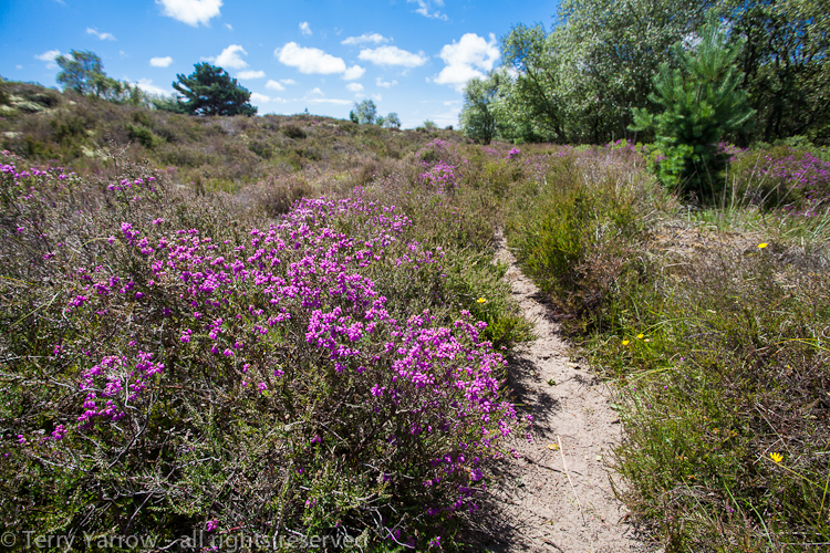 For this walk, I didn’t linger on the beach – that was to be my way back.  My way out was along a very quiet path known as the Heather Trail.  This is a lovely route that winds through the heathland behind the dunes and it can be a very colourful walk at the right time of year.  This is the Egdon Heath of Hardy novels such as The Return of the Native.  With the accompaniment of the skylarks, it is a lovely place to be.