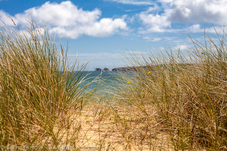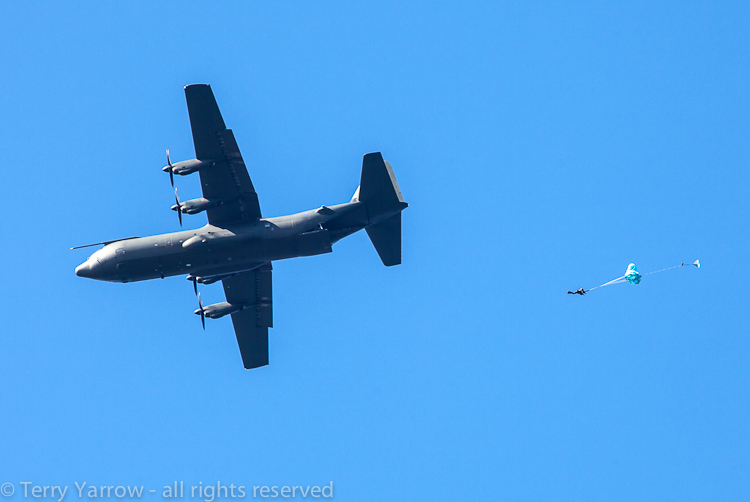 It was as I was walking along this part of the route that there was another reminder of both war and peace, it was the faint drone of a plane’s engine growing louder as it came closer.  This was a troop carrying plane that often flies over this part of the coast, plying its trade to and fro, dropping paratroops out of the back – it looked like some giant insect giving birth as it flew with its new-born offspring gliding to earth.  I often envy the troops their view as they glide slowly and effortlessly down in the silence just carried by the warm air and breeze.  I’m not sure though that my envy would be quite so evident if I was stood at the back of the plane and about to leap out into the unknown!
