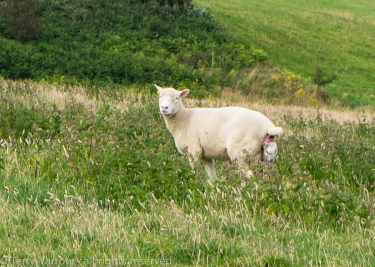 There were sheep on the hillside and one particular sheep was all on its own, laying on the ground. I thought it looked unwell but it was also very big so I guessed it was heavily pregnant. What I hadn’t realised was that it wasn’t only pregnant, it was giving birth at that very moment! After a while as I stood and watched, she stood up and I saw the amazing sight of the head of a little lamb poking out as if it was just looking around surveying the scene to decide whether it wanted to come out! With a head at each end, it looked like something out of Doctor Doolittle ;)!