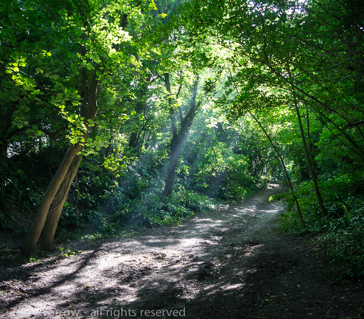 The afternoon was drawing on and I still had a few miles to walk, so I moved on. I climbed up out of the village through the trees and the beautiful light of the golden hour beamed down between the foliage creating an ethereal atmosphere that took my breath away. I tried to capture the moment but the camera is a poor substitute for being there.