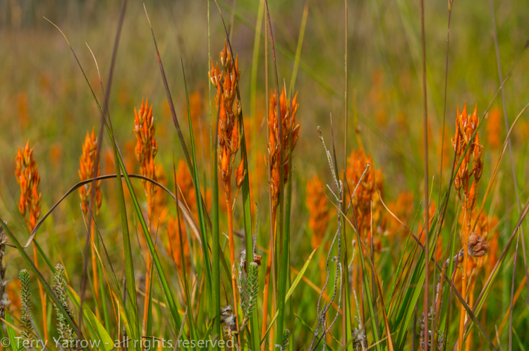 Leaving T E Lawrence behind, I continued my walk, and crossed yet another pocket of heathland. Here again there was a mix of summer and winter with the delightful Bell Heather still bearing its summer magenta-purple plumage whilst the equally delightful Bog Asphodel had changed from yellow to a wonderful autumn orangey red.