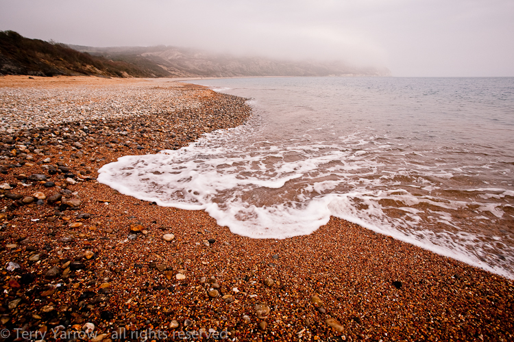 The mist covers White Nothe whilst Ringstead Bay stays clear