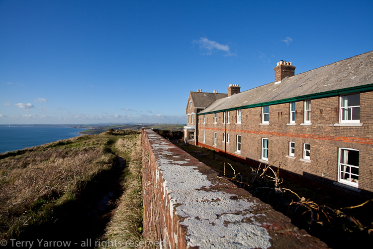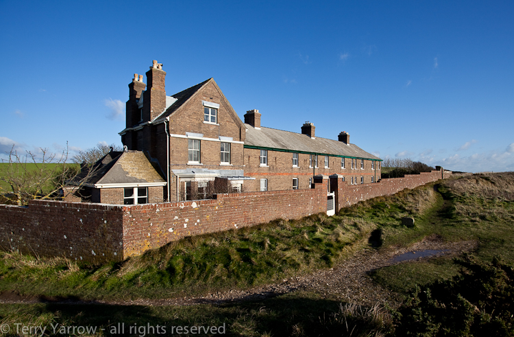 The cottages were built to house coastguards, with the nearest three story house being that of the captain and the other six cottages housing his men.  At one time, with wives and children, there were 44 people living in this short row of cottages.  They are well placed for the coastguards, simply because of the all round views.