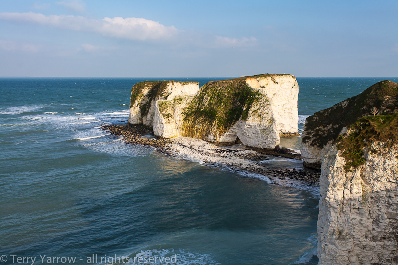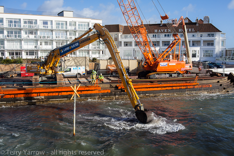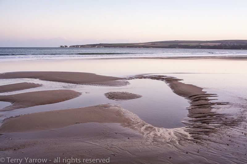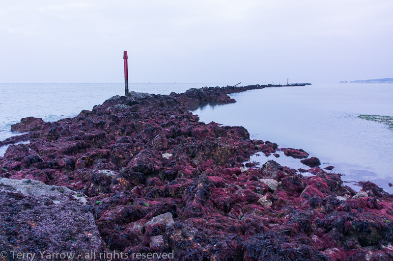 This is The Training Bank, a man made reef of rocks laid to help maintain the deep water channel through the entrance to Poole Harbour by directing the tidal flow. This is only visible at low tide and it makes an interesting spectacle stretching out across the bay towards Old Harry Rocks.