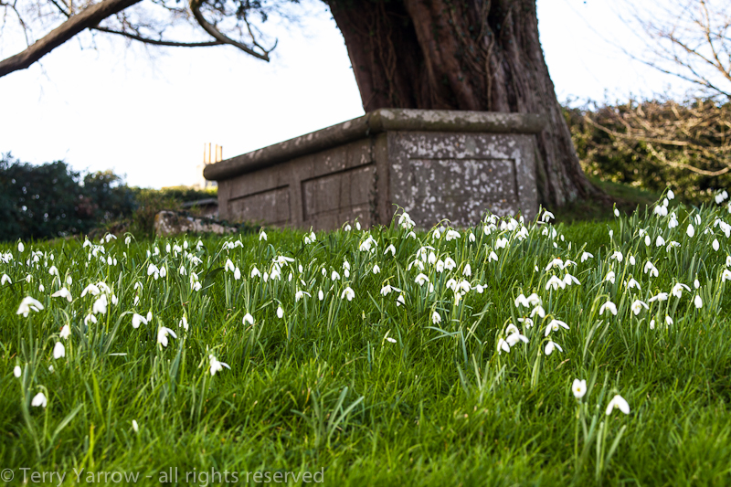 But it is time for us to leave this captivating scene and head on with our walk. Passing through a delightful village, we cross the graveyard that surrounds the beautiful Norman church and it is alive with snowdrops – a timely reminder that spring, and new birth, is not too far away.
