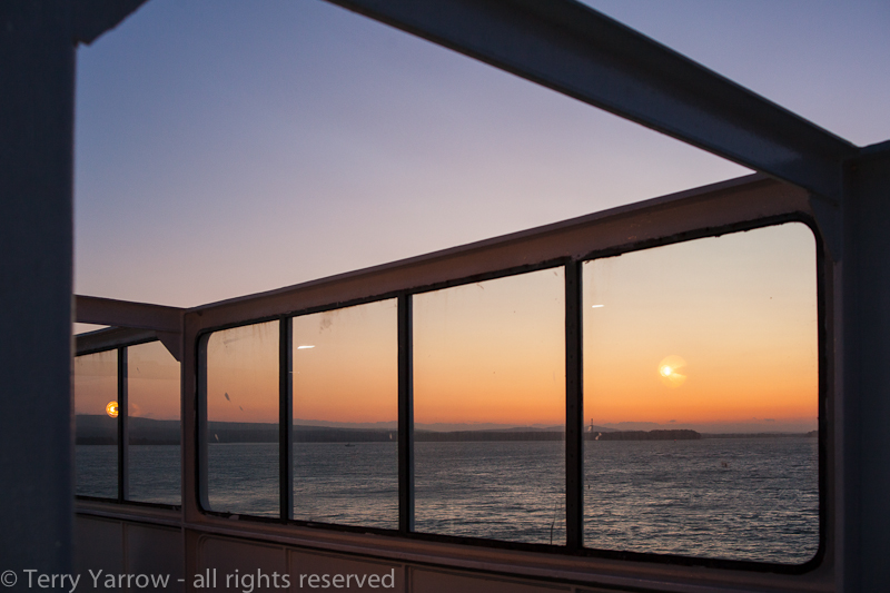 And so finally after a fantastic day along the Dorset coast we reach the ferry again. Now that the sun has gone, the temperature dips to below freezing so the little bit of protection that the ferry provides is welcome. And we take the ride back across the harbour entrance with just the last remaining glow in the sky. What a great day!