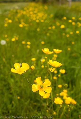 Sluice gates and buttercups in the meadow
