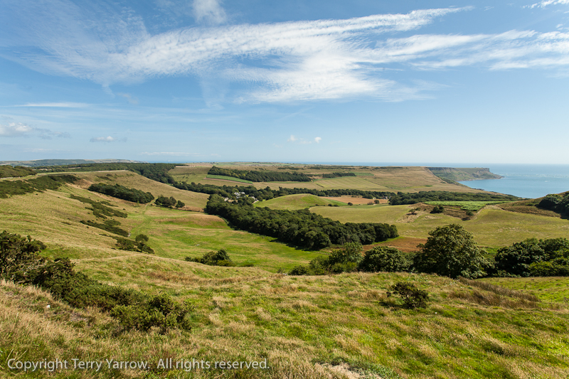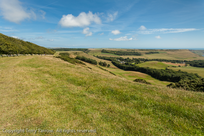 This valley is truly amazing, a huge bowl with a ridge of hills round three sides and the sea on the fourth, and with another of the Purbeck mansions sitting in the middle, with of course its associated farm. This whole valley and surrounds changed hands a few years ago for £25M. What a place to live! In the picture below, I have tried to capture the whole amphitheatre although it never comes across fully in a small picture.
