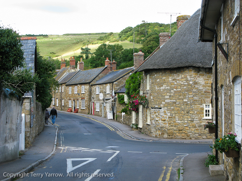 Amazingly in the 5 hours since leaving Weymouth I had walked 14 miles……and I was now hungry so I decided to stop off at the local pub for a sandwich :)! Unfortunately there was no room in my rucksack even for food! Abbotsbury is a beautiful and unspoilt village with honey coloured cottages and the lovely surrounding hills. It is a popular place with its swannery, tropical gardens, chapel, abbey ruins, tithe barn and so on, and especially so in the spring when the cygnets hatch in the swannery.