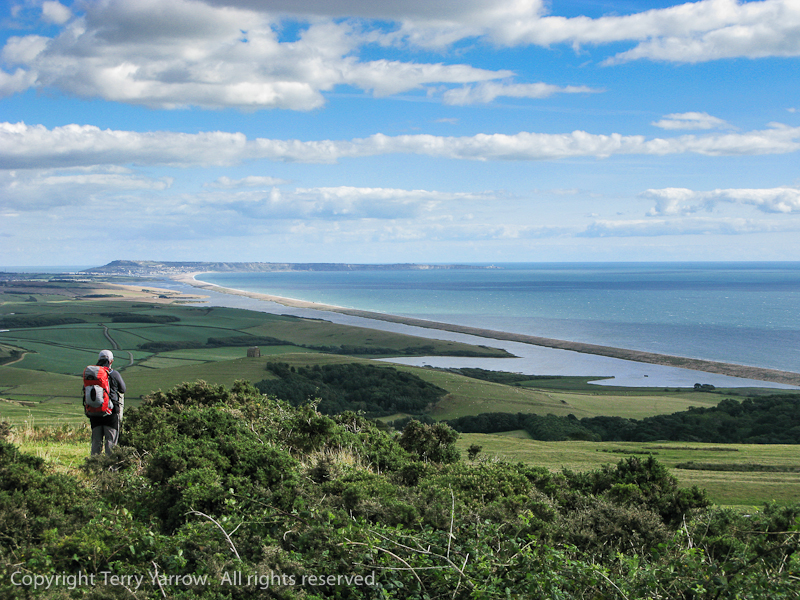 It wasn’t the last I would see of the village as there are fabulous views all along this ridge and in the picture below, you can really get a feel for the way The Fleet has been created by the long barrier that is Chesil Beach or Chesil Bank as it is sometimes known. Beyond those, you can see the Isle of Portland stretching out to sea.