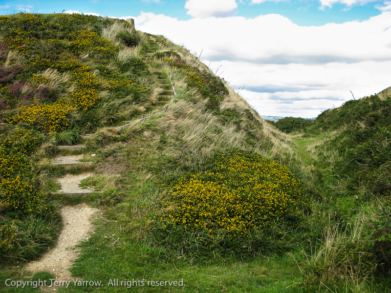 Yet another feature along this part of the walk is Abbotsbury Castle, an Iron-age hill fort. Its double ramparts cover around 4 acres but the weather, and probably feet, have over the years caused some erosion. When I passed through, the wind was whipping across the hilltop and I wondered how the people would have coped there in the winter.