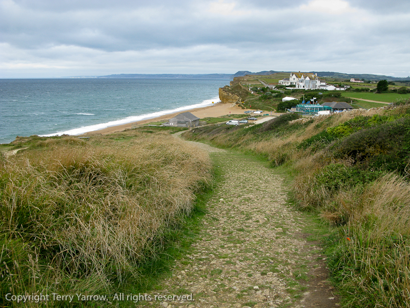 Burton Freshwater is home to a large caravan park, so as lovely as it is I don’t linger there, preferring to continue along the coast.  This took me up onto the cliff top where I thought I was going to have a nice flat walk into West Bay – wrong!!  I had forgotten that along the short stretch of coast there was one of those annoying dips in the cliff that necessitated dropping right down to sea level only to climb back up the other side!  There will be many of those to come over the next few days!