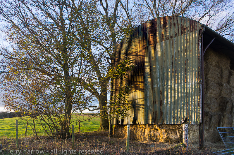 At the top of the hill, I passed another old barn and I just couldn’t help but capture the lovely evening shadows of the nearby trees being thrown by the sun.