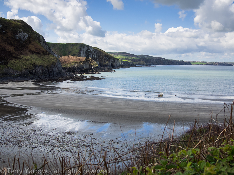 I passed a few walkers on route as this particular headland makes a very nice day walk, although I had still not met any other ‘end to enders’.  Dropping down off the high headland, I reached Pwllgwaelod (don’t you just love these Welsh names), a lovely bay from which I could view the coastline that would be my companion for several hours.