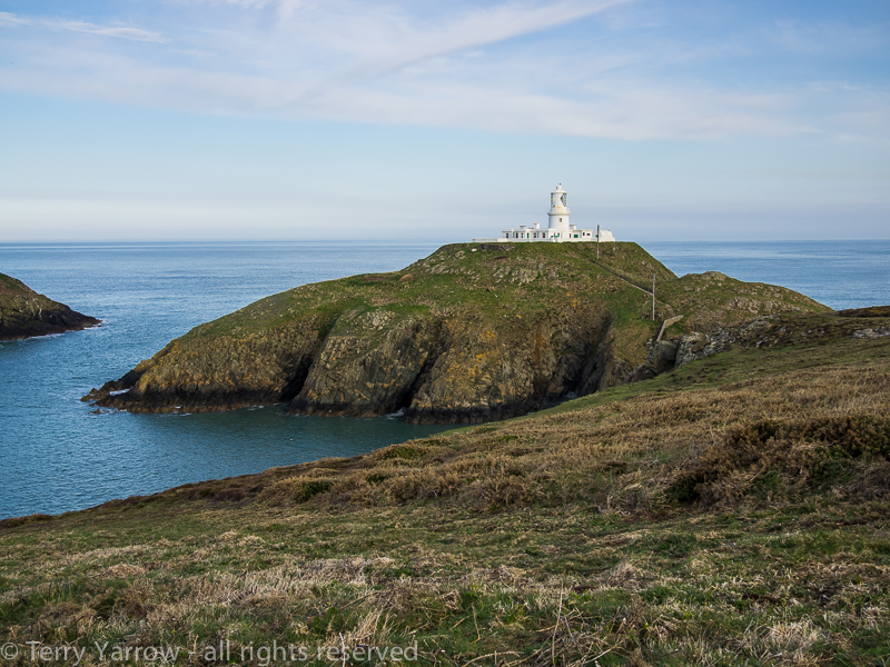 I was up early to break camp and pack away my tent which was wet with dew. By 7.30am I was on my way to the coast path again as I had had to walk inland yesterday to find somewhere for my night stop. I soon passed the Strumble Head lighthouse which stands on Ynys Meicel (St Michael’s Island). This was built in 1908 to replace a lightship, previously moored off shore, and was one of the last to be built in Britain.