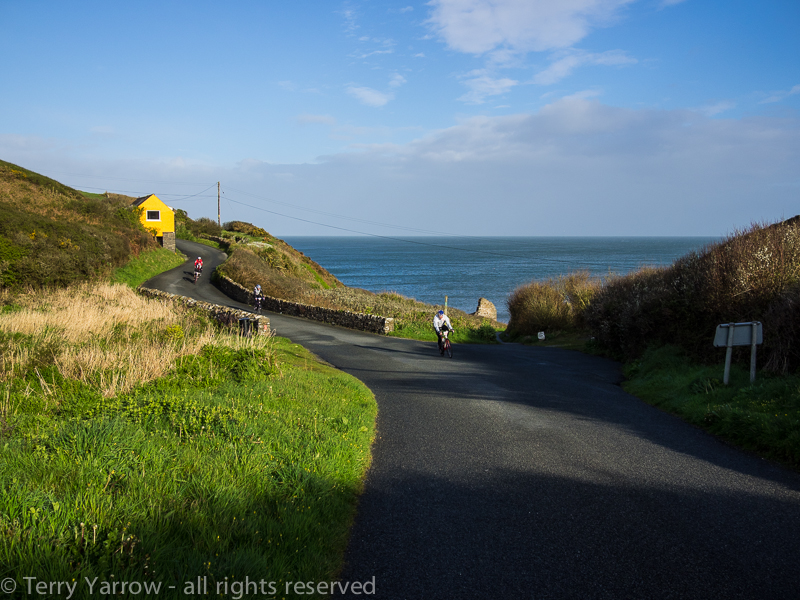 Cyclists pass me by at Aber Draw in the early morning sunshine