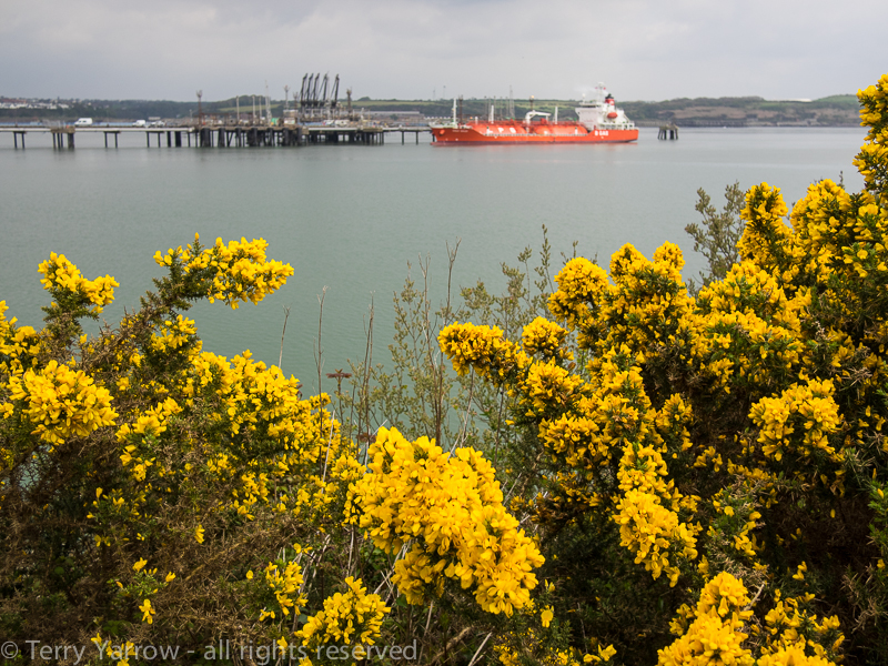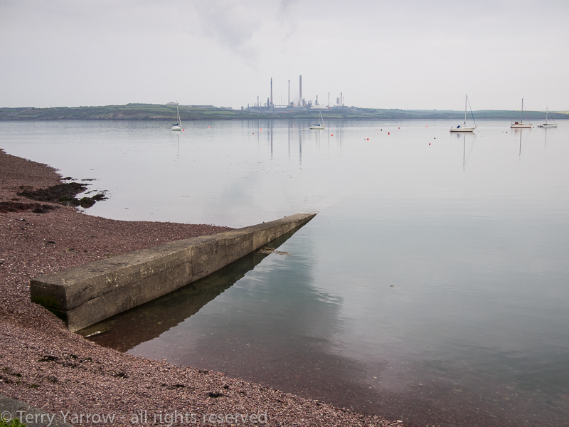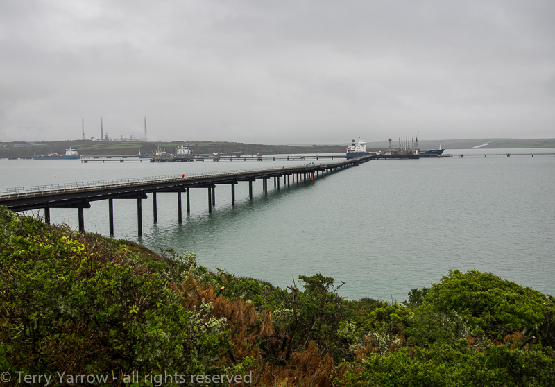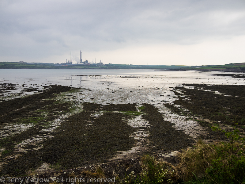 There was a strange sense of isolation, perhaps because the church seems to stand in the middle of nowhere, or perhaps because of the nearness of the refinery, the largest on the Milford Haven complex. That refinery would stay in view for the rest of the day as my route took me around the coast below it.