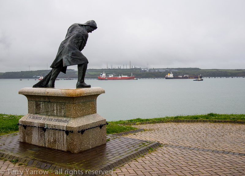 Milford Haven and the ‘Tribute to Our Fishermen’ with more oil tankers beyond