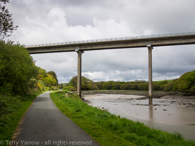 Whilst I was in the cafe, the rain that had lingered seemingly not wanting to leave me, finally stopped and the sun made an appearance. The food, a change of socks, and a bit of sunshine made a world of difference as I set out once again along the river bank. I could see my route out of the town – it was along the Cledau Bridge high above me!