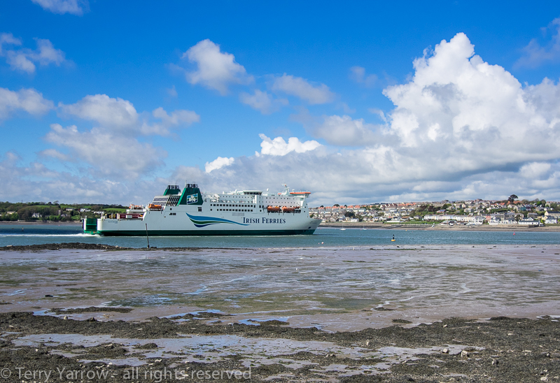 Pembroke Docks was originally a small fishing village known as Paterchurch but it expanded rapidly in the early 19th century following the building of the Royal Naval Dockyard. Its position was ideal, being very sheltered and having deep water and over a period of around 100 years, hundreds of naval vessels were constructed at the yard as well as five royal yachts. Eventually the dockyard was declared redundant and these days, the only large vessels using the docks are the Irish Ferries. There was one about to leave so I sat on a seat in the warming sun and watched it go on its way.