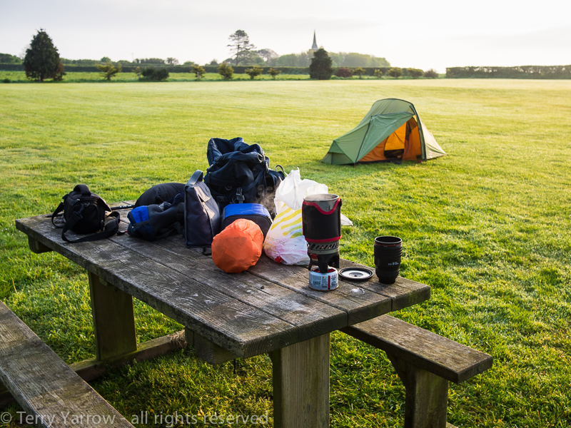 My stopping point for the night was a mile or so outside the town so I stopped off at a cafe for some food en route. Having eaten, I made my way along the road to the campsite and put up my still soaking wet tent so that it would have a chance to dry out before nightfall. It was a beautiful evening and I had the campsite to myself again…..and the luxury of a picnic table too! Not only that but the site had laundry facilities so I was able to dry my things ready for the next day.