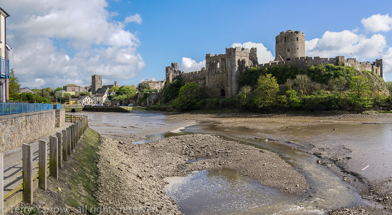 Leaving the town, I followed a somewhat muddy path along the upper reaches of the River Cledau estuary. The tide was out leaving acres of mud and I wound my way carefully along the river bank until Pembroke came into view with its castle standing proud above the town. The castle dating from Norman times was, amongst other things, the birth place of King Henry VII.