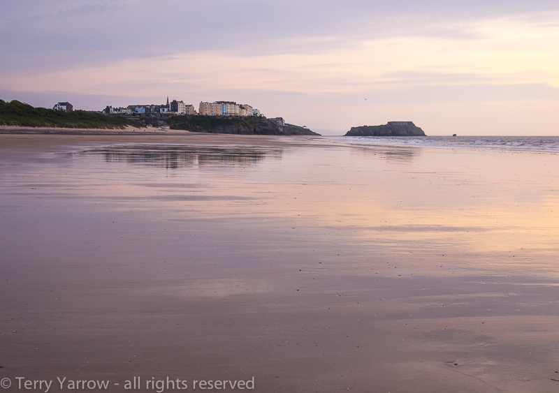 The beauty of early morning on the beach – Tenby and its island fortress in the distance