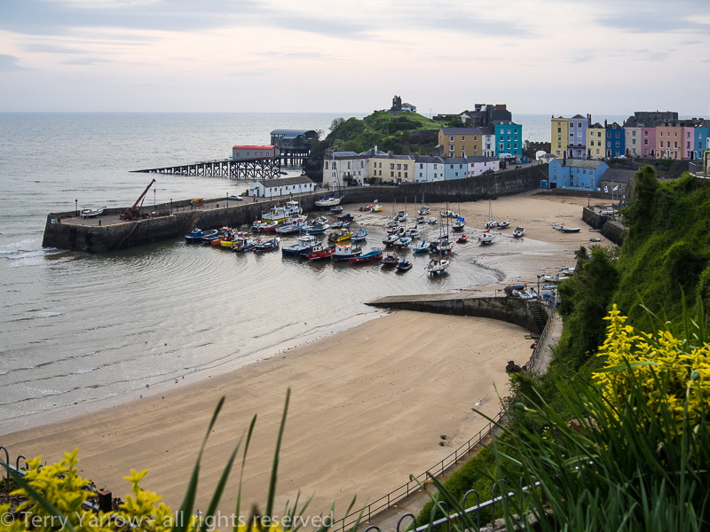 The Tenby streets were quiet apart from the dustmen emptying bins and it was delightful walking past the quay and along the water front without the noise of traffic.  With its harbour, two lifeboat stations, old fishermen’s chapel and pastel painted houses, it is a picturesque town.  Set within medieval walls, Tenby was once an important fishing and trading centre and there were lots of powerful merchants living there in large houses.  Now it is the tourists who are the main source on income.
