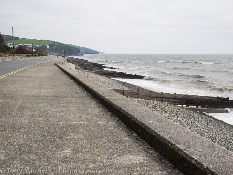 Exiting the tunnels, I arrived at Wiseman’s Bridge.  The day had now clouded over and there was a strong wind whipping off the sea across the rocks.  I made my way through the village and followed the road over the next headland.