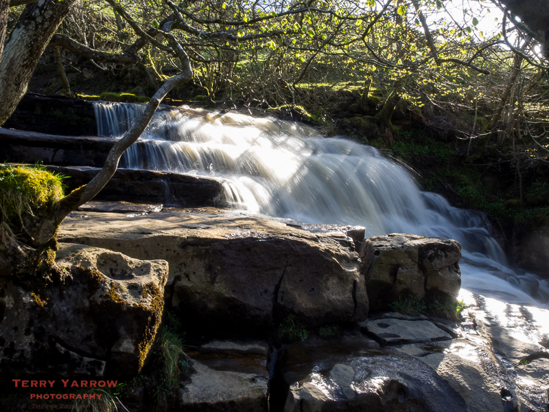 The path soon dropped down to meet and cross the River Swale before following the north bank of the river, passing a very full and flowing Catrake Force – a 17th century traveller was right when he once said, ‘The Swale rusheth rather than runneth’! This waterfall in fact has four levels as the river flows down the hillside.