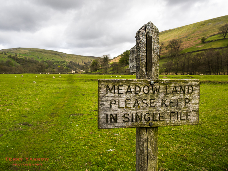 At times, the path left the riverside and crossed verdant meadows with a perhaps unusual request for walkers to cross in single file. I was walking alone so complied quite easily with the sign 🙂 !