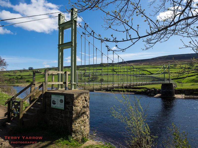 From Healaugh, the last couple of miles followed the river bank again, a lovely flat, grassy walk in the most picturesque countryside. One interesting feature of this last part was the suspension bridge that provides a crossing over the Swale. The original bridge built in the early 20th century was damaged in a storm in 2000 when the level of the river rose by 3 meters in 20 minutes. It was rebuilt by the National Park Authority although in reality, there is no public right of way over the river and no-one has claimed ownership of the bridge.