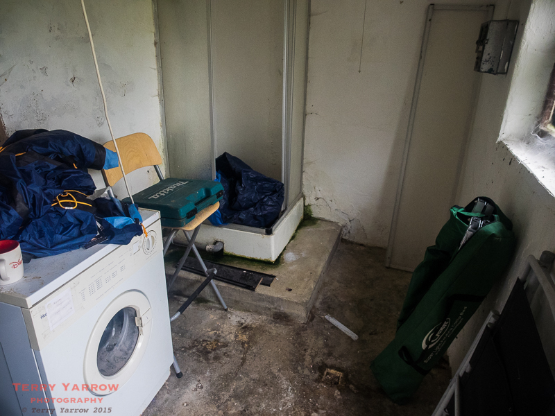I headed back out into the rain, tramping across sodden fields to reach the farm and I knocked on the door. ‘Do you still do camping’ I asked. ‘No, but you can’, came the reply. The farmer took me round the back to the old camping area and showed me where the disused shower room and toilet were. I looked outside to the flooded grass and looked inside to the somewhat cluttered and dirty shower room…..and I chose the latter! ‘Can I just crash in here?’ I asked.