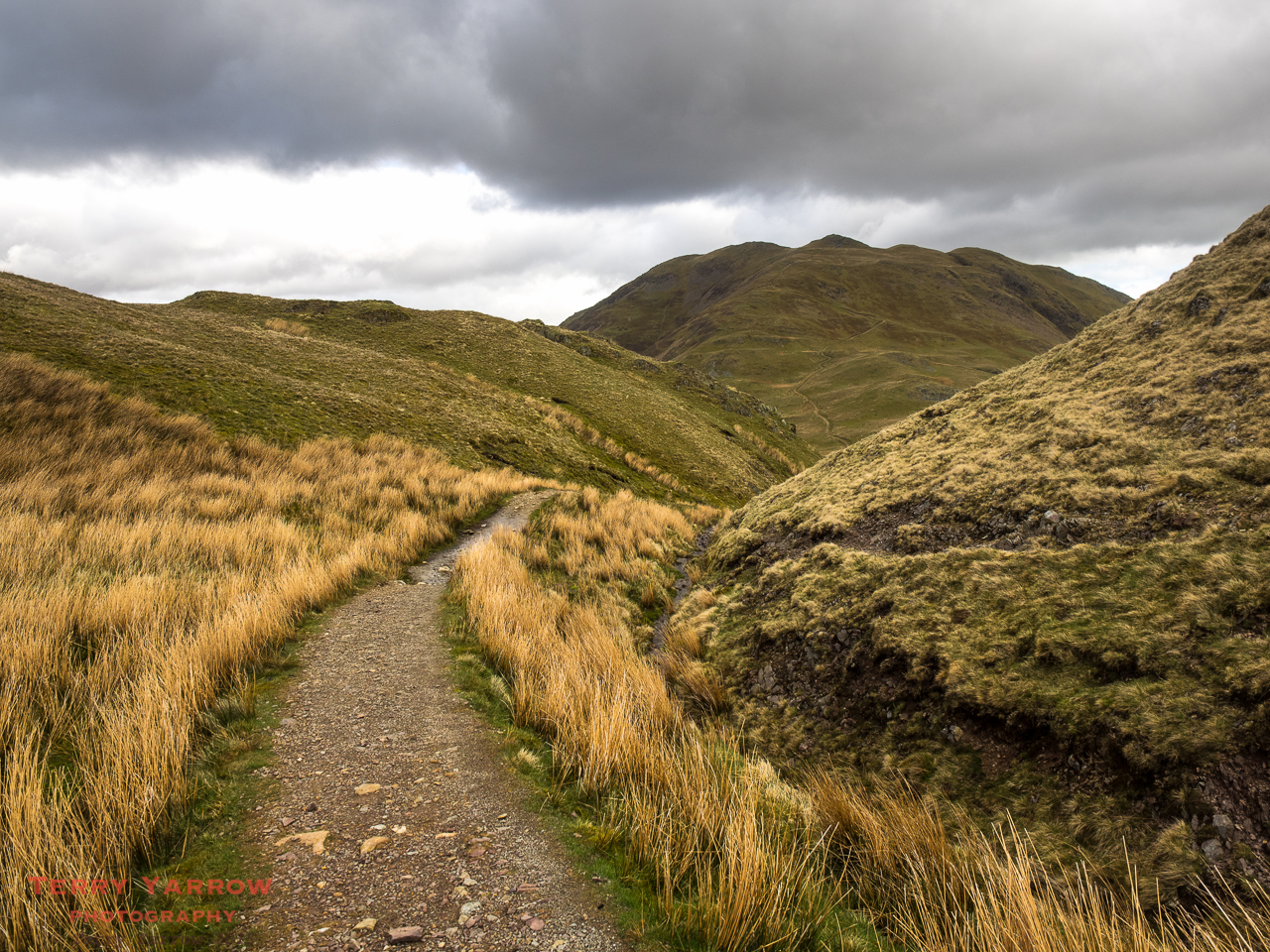 Road and good track to Great Tongue, steep and rocky climb to Grisedale Hause and Grisedale Tarn (600 meters), rocky but good path beside Grisedale Beck down to Patterdale, and then mainly farm track or road into the village.