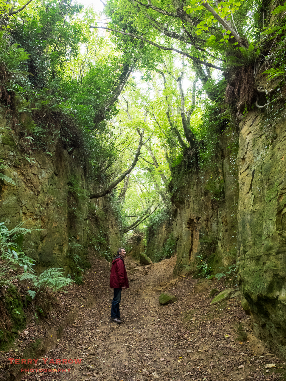 But it is not only this feeling of walking a hidden underground world that makes these places so special. For many centuries people, animals and carts have passed along this very route and as you stand looking down the ‘tunnel’, you can almost feel their presence. Each meter of depth relates perhaps to 100 years of use so you stand in the midst of history. Who walked this route when it was up at ground level, who walked it when it was a meter deep, two meters deep, three meters deep…….? What atrocities took place here, what joys? What were their lives like? What would they say if they met me as I walked it today? And what was the purpose of the route initially? Some of these things are lost in the mists of time but as you stand in these awesome places full of intrigue, you wonder, and that wondering leaves you with a sense of being part of something vast and ancient. You are just one of perhaps billions who have walked this way before and you feel very insignificant!