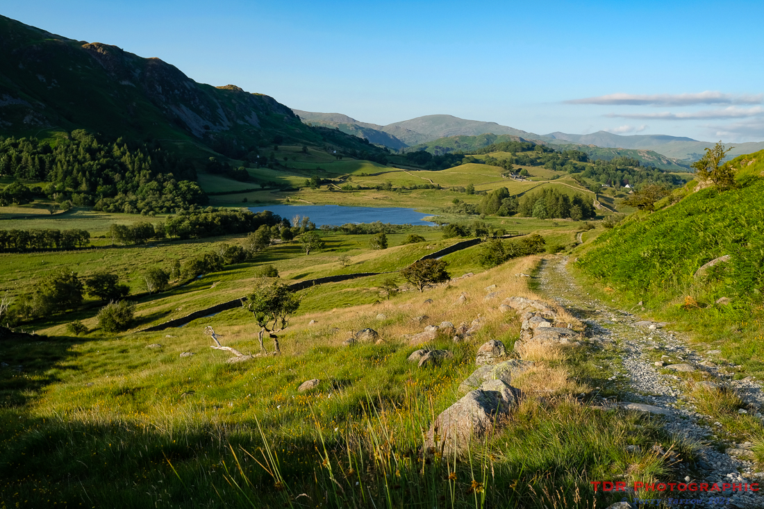 The views were staggering, taking in the whole of the Little Langdale Valley, Coniston, Windermere, and we could even identify Pen Y Ghent in Yorkshire. From there, it was all down hill as we followed Wet Side Edge down into the valley, passing Little Langdale Tarn on the way back to the car. The late afternoon/early evening light was just glorious, taking on the ‘golden hour’ warm glow as it slanted across the landscape, highlighting the contours and shapes.