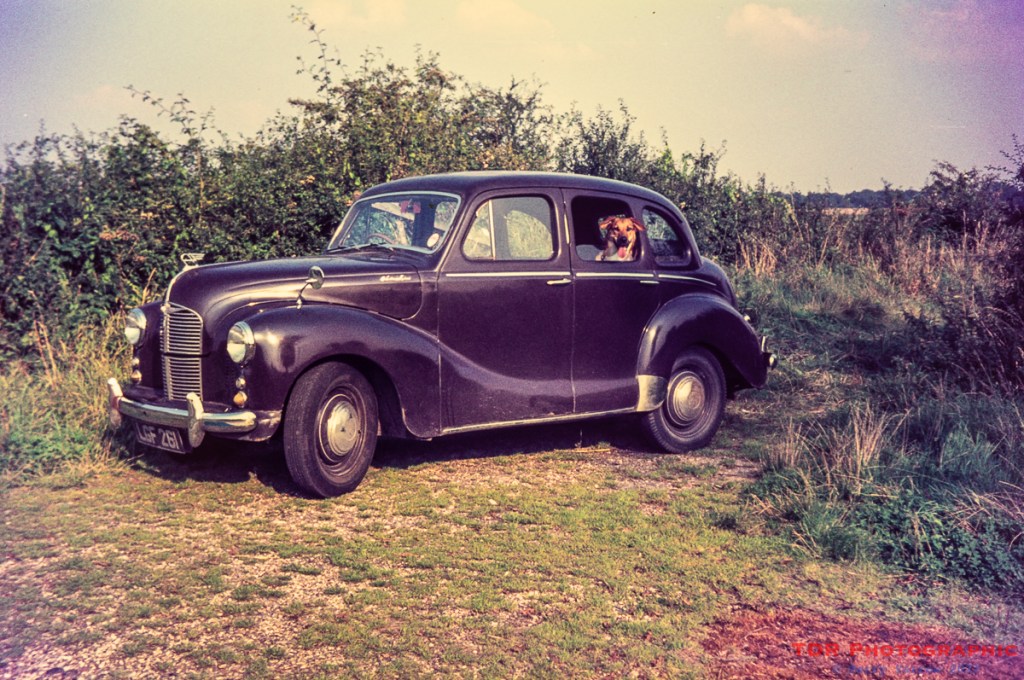 My first car was a ‘sit up and beg’ Ford Popular with a big end gone – you could hear it before you saw it! I paid Β£15 for that car and the ride wasn’t that great. When the Austin came up for the crazy price of Β£30, I bought it, and it immediately felt like pure luxury after the Ford as it was more plush and gave a much softer ride. In fact, the soft ride was in part a problem because the front shock absorbers were shot which meant that driving down country lanes was like riding in a powerboat as the front end bounced mercilessly π ! With little money, I couldn’t afford to do anything about it except keep topping them up with fluid but that just leaked out very quickly! Of course in those days, most roads in Dorset were country lanes. To this day, we still have no motorways but back then, I’m not sure we had many A roads either! It was great fun to drive, or rather bounce, down those lanes though, and Rex loved it too π !