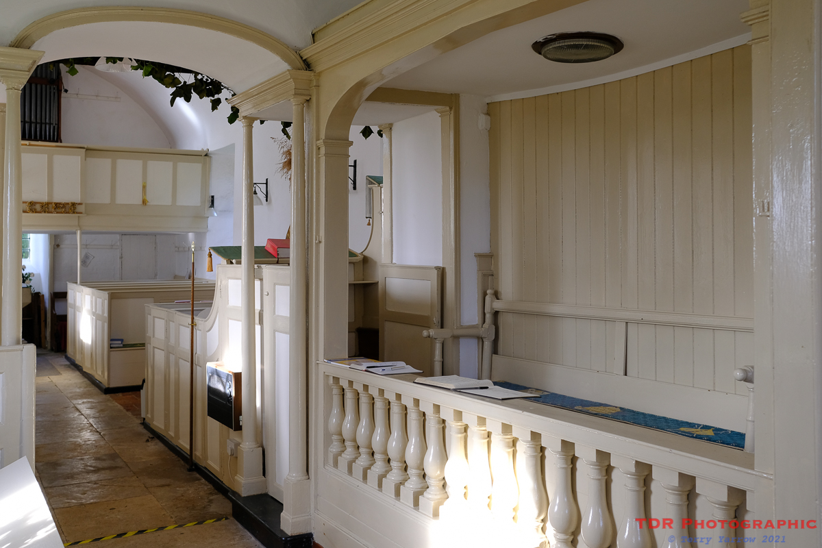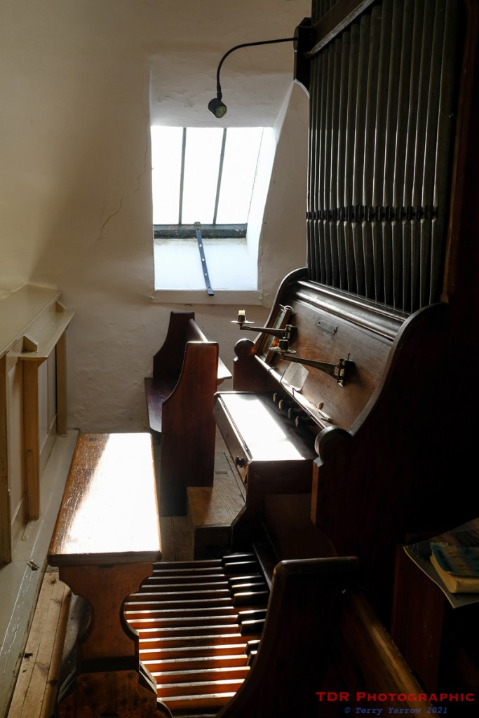 At the rear of the church, there is a ‘musicians’ gallery’ that now houses the organ and some extra seating. This is approached by a narrow, spiral staircase. The small skylight window has always intrigued me since it seems somewhat incongruous. It appears that this is a Georgian addition that perhaps unusually remains since they were branded as ‘unecclesiastical’ in Victorian times.