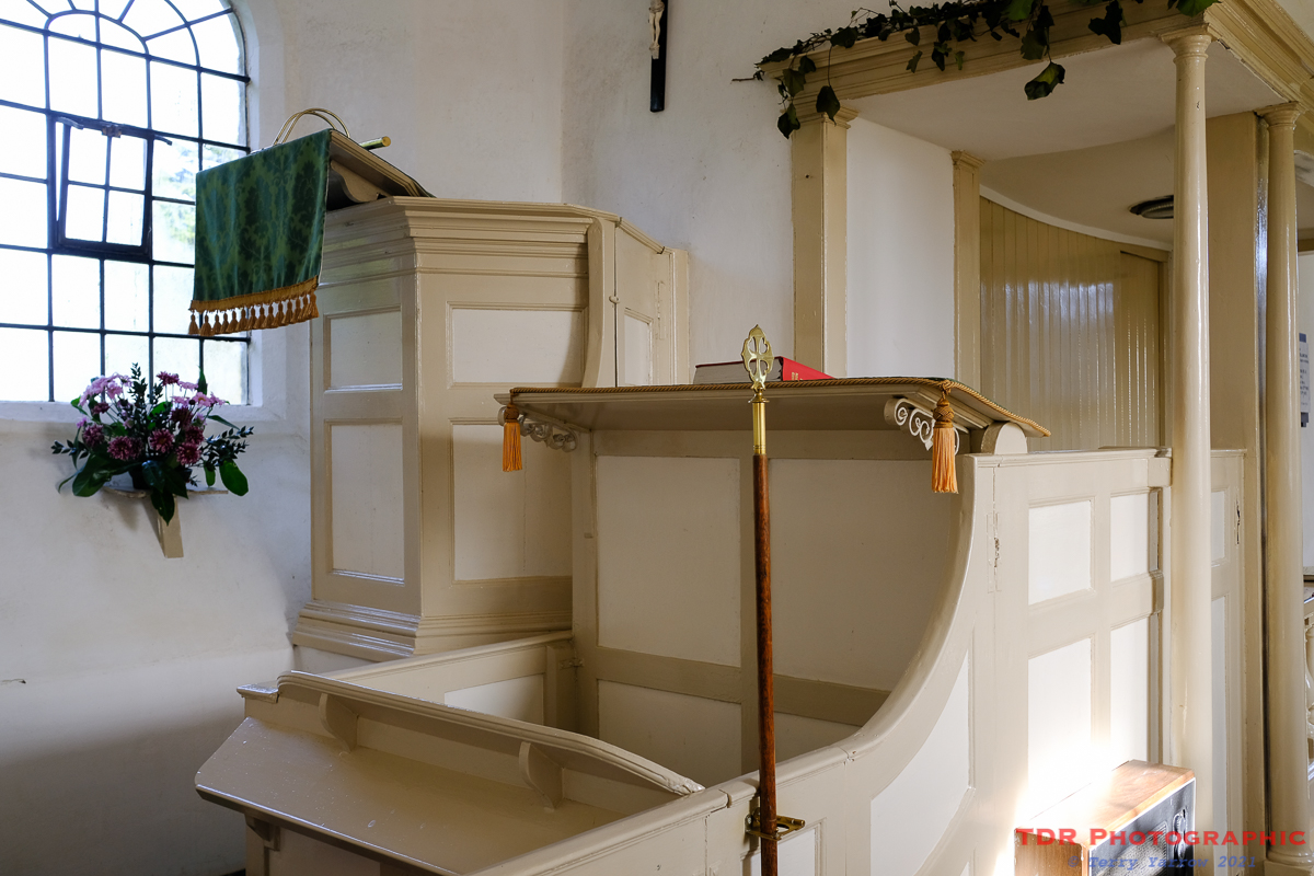 One feature that could perhaps be seen as somewhat ‘over the top’ is the triple decker pulpit which takes up quite a lot of space in this small church. These were often added after the Reformation to provide space for the preaching of the word (the top deck), the reading (middle tier), and a desk for the parish clerk (the lowest level).