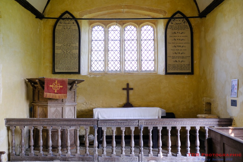 After the demolition of the main part of the church, the remaining chancel was left to decay, being used for some time as a mortuary chapel and then as a barn, until the 1930’s when a new incumbent started a restoration project after seeking advice from well known architect A R Powys. By 1936, the work had been completed and the church remained in use for some 40 years longer before being transferred to the Churches Conservation Trust.