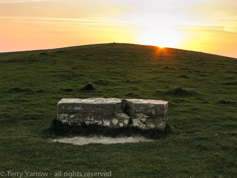(B) Rest-and-be-Thankful – this lovely, old, and broken, stone seat was erected in 1852. Most of the inscriptions are now illegible but it is still a great place to sit and rest after the steep climb. The views from here take in Swanage on one side and Studland and Poole Harbour on the other, making the climb up worth the effort. In the summer these chalk hills are alive with the sound of skylarks, and the blue of chalk associated butterflies.
