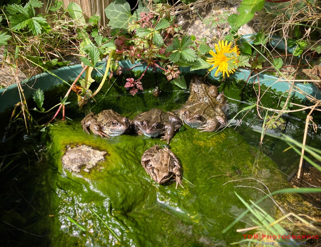 My ‘main’ pond, which itself is only around 4 feet long and kidney shaped, is one I installed many years ago. It has a few fish in it, and I now see a lot more frogs and toads in there too. In the past, any tadpoles have never matured as I guess they got eaten but now, with the bucket pond, they have somewhere to flourish. I love to watch the fish and listen to the splashing of the ‘waterfall’. It is a very mindful experience just sitting there on my second bench that is placed beside this pond. A slight annoyance is that I have to cover this pond with mesh because, although it is so small, eagle eyed herons once discovered it and dined on my fish. The fish in the picture above, I have had for many years now, and I like to think they recognise me as they come over whenever I go up to the pond. Of course, it could just be that they think I’m going to feed them, but let’s not spoil the illusion π !