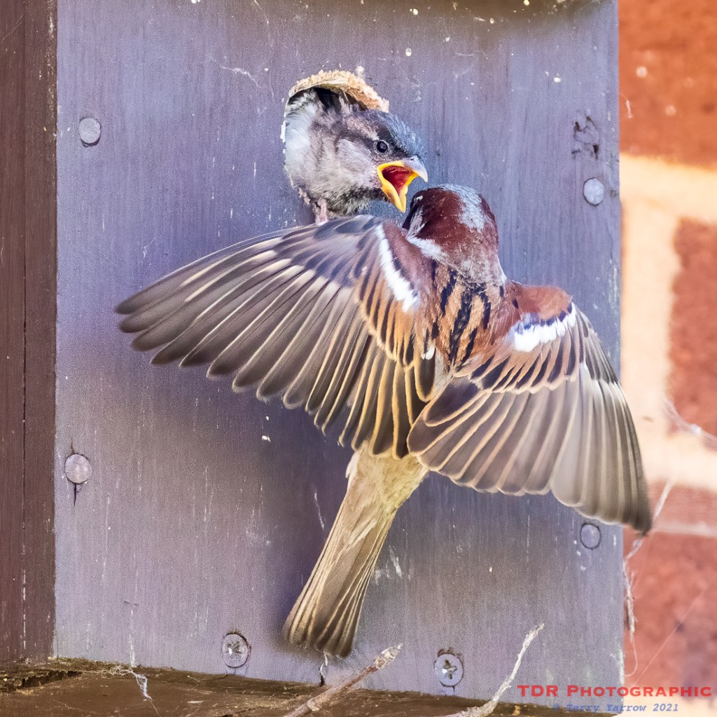 Feeding time – Sparrows in one of my nest boxes