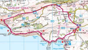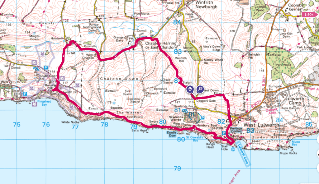 A 9 mile moderate/hard walk around the eastern section of the Lulworth MOD Firing Range. Access is limited and there are some strenuous climbs but the rewards make it worth the effort as this is a beautiful part of the Dorset coast and the views are breathtaking.